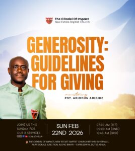 The Citadel of Impact (New Estate Baptist Church) is a community of dedicated believers; committed to loving God, loving people, making disciples and impacting the world.